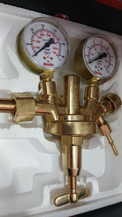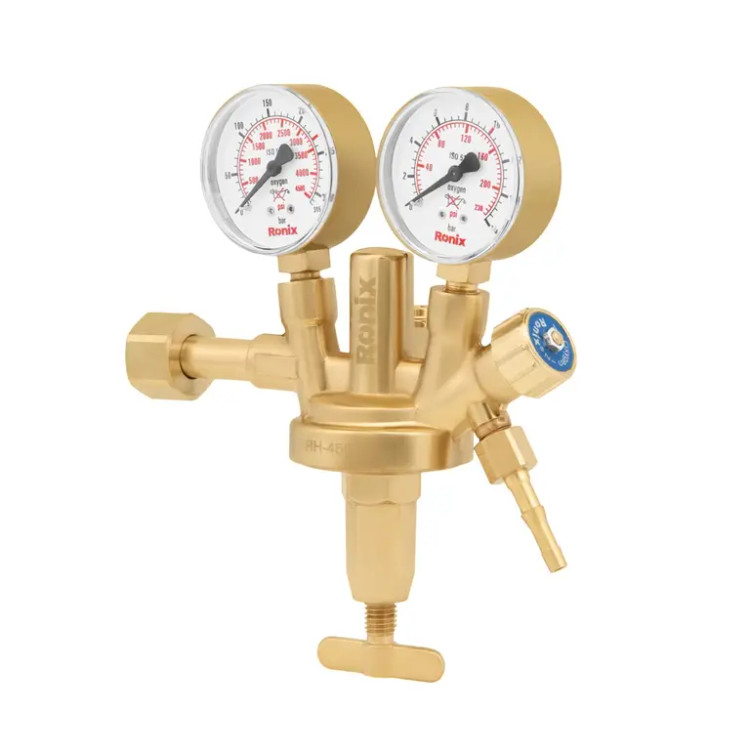 مانومتر اکسیژن رونیکس دارای دو گیج برای نمایش دقیق فشار ورودی و خروجی، که حداکثر فشار ورودی را تا 315 بار و فشار خروجی را تا 16 بار نشان میدهند. بدنه این مانومتر از آلیاژ برنج با کیفیت بالا ساخته شده که استحکام و دوام بالایی را در حین کاربری فراهم میکند.