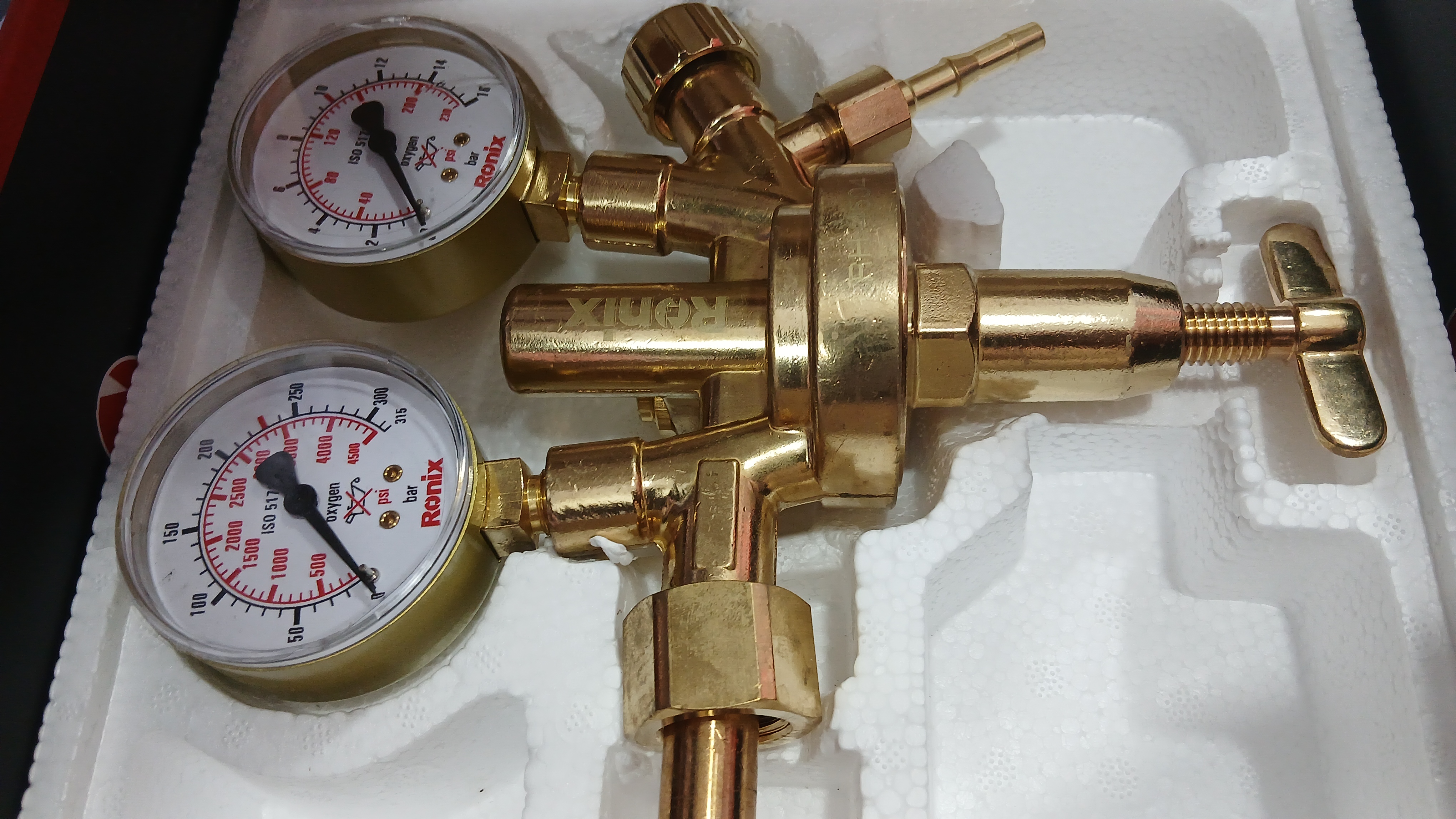 مانومتر اکسیژن رونیکس دارای دو گیج برای نمایش دقیق فشار ورودی و خروجی، که حداکثر فشار ورودی را تا 315 بار و فشار خروجی را تا 16 بار نشان میدهند. بدنه این مانومتر از آلیاژ برنج با کیفیت بالا ساخته شده که استحکام و دوام بالایی را در حین کاربری فراهم میکند.